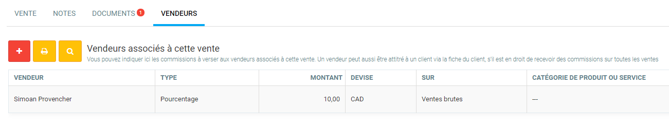 Lorsque vous créez des ventes, les commissions qui seront appliquées sur celles-ci se trouveront dans l'onglet "Vendeurs" de la vente.