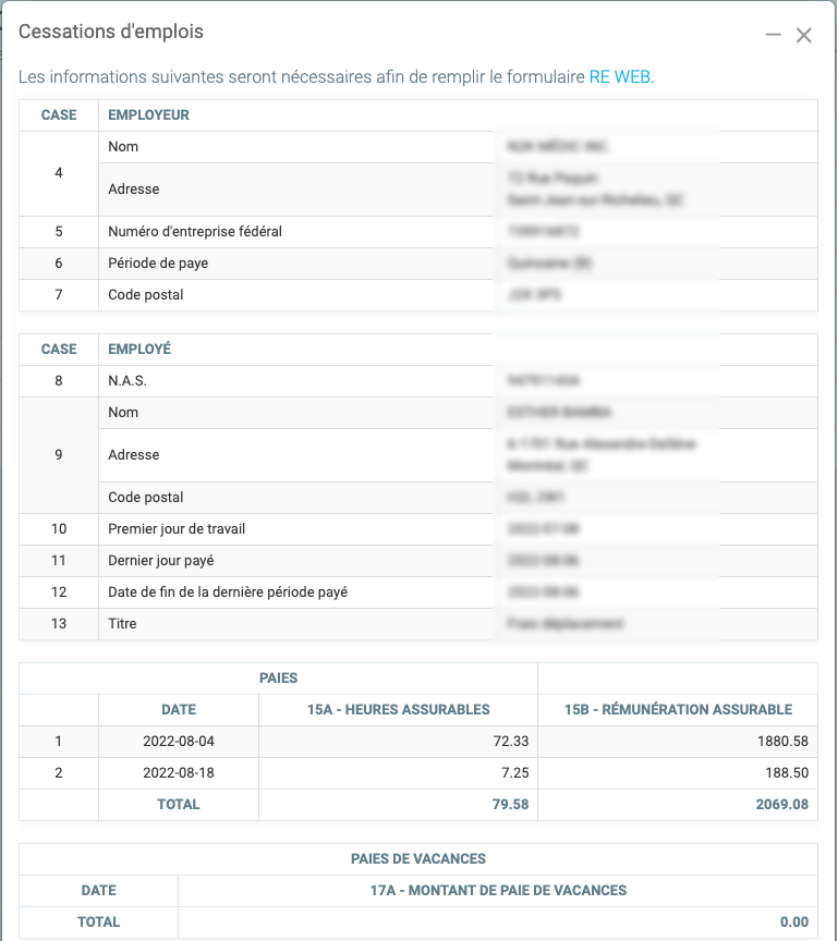 Actuellement, GEM-BOOKS ne vous permet pas de générer des relevés d'emplois automatiquement. Vous aurez donc besoin des cumulatifs de paie afin de pouvoir procéder via le site web du gouvernement fédéral (REWEB) accessible via le lien suivant :