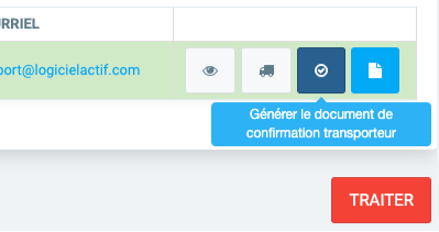 Dans le cas où ce serait vos équipements, on sélectionne à la place le transporteur maison (nous) avec la petite maison bleue. Dans un tel cas, on laissera la rubrique "Coûtant" à zéro. (La raison pour laquelle on peut mettre un montant, c'est que certains transporteurs se facturent eux-mêmes à une autre entité). Le bouton "Traiter" ne créera pas d'appel à la facturation, mais seulement une vente.