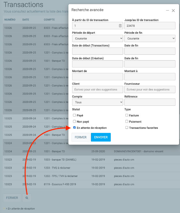 Étant donné que tu n'as jamais réceptionné de factures À venir non reçue, tu peux les retrouver dans la recherche avancée des Transactions dans Comptabilité.