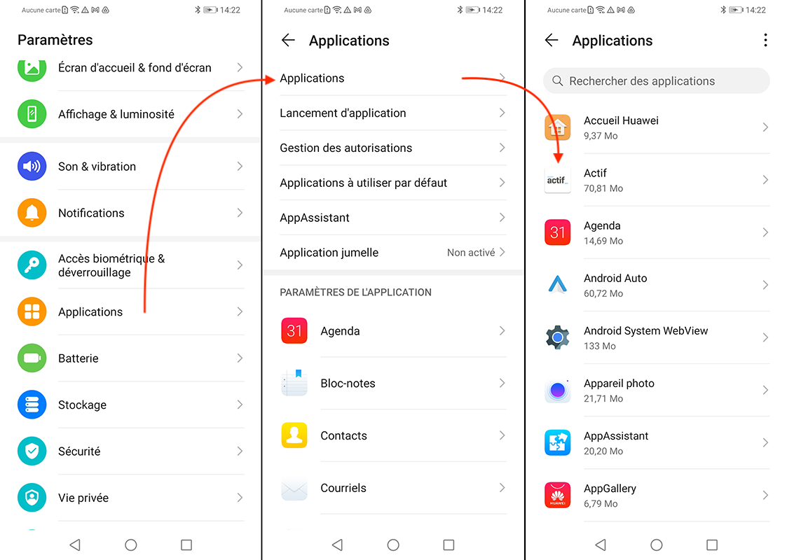 Dans les paramètres d'applications de votre appareil (Paramètres > Applications > Applications et Actif)
