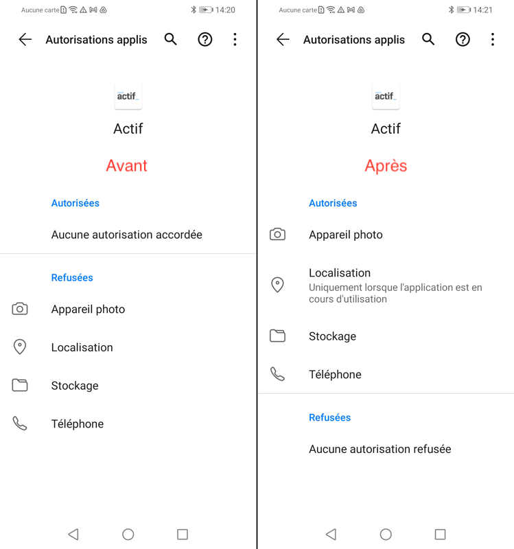 Assurez vous que toutes les autorisations demandées sont autorisées.