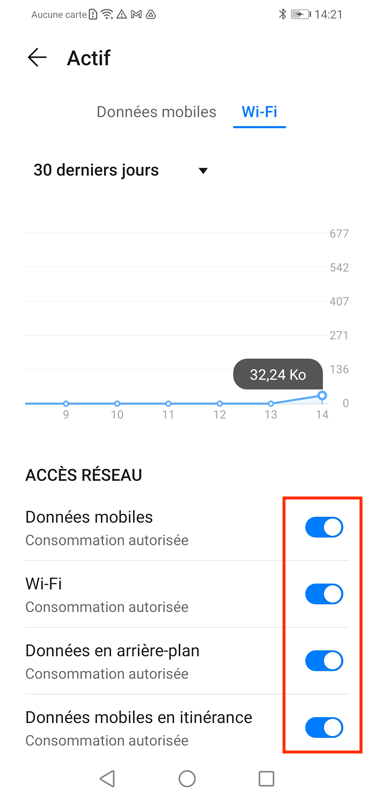 Assurez-vous que l'option "Données en arrière-plan" est activée ans la section "Utilisation des données"