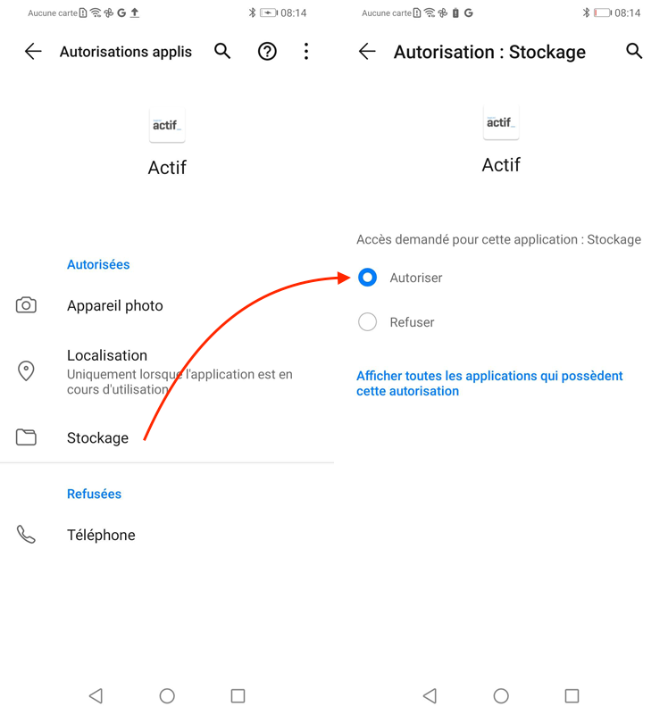 Assurez-vous aussi que l'Appli a accès au stockage interne de votre appareil.