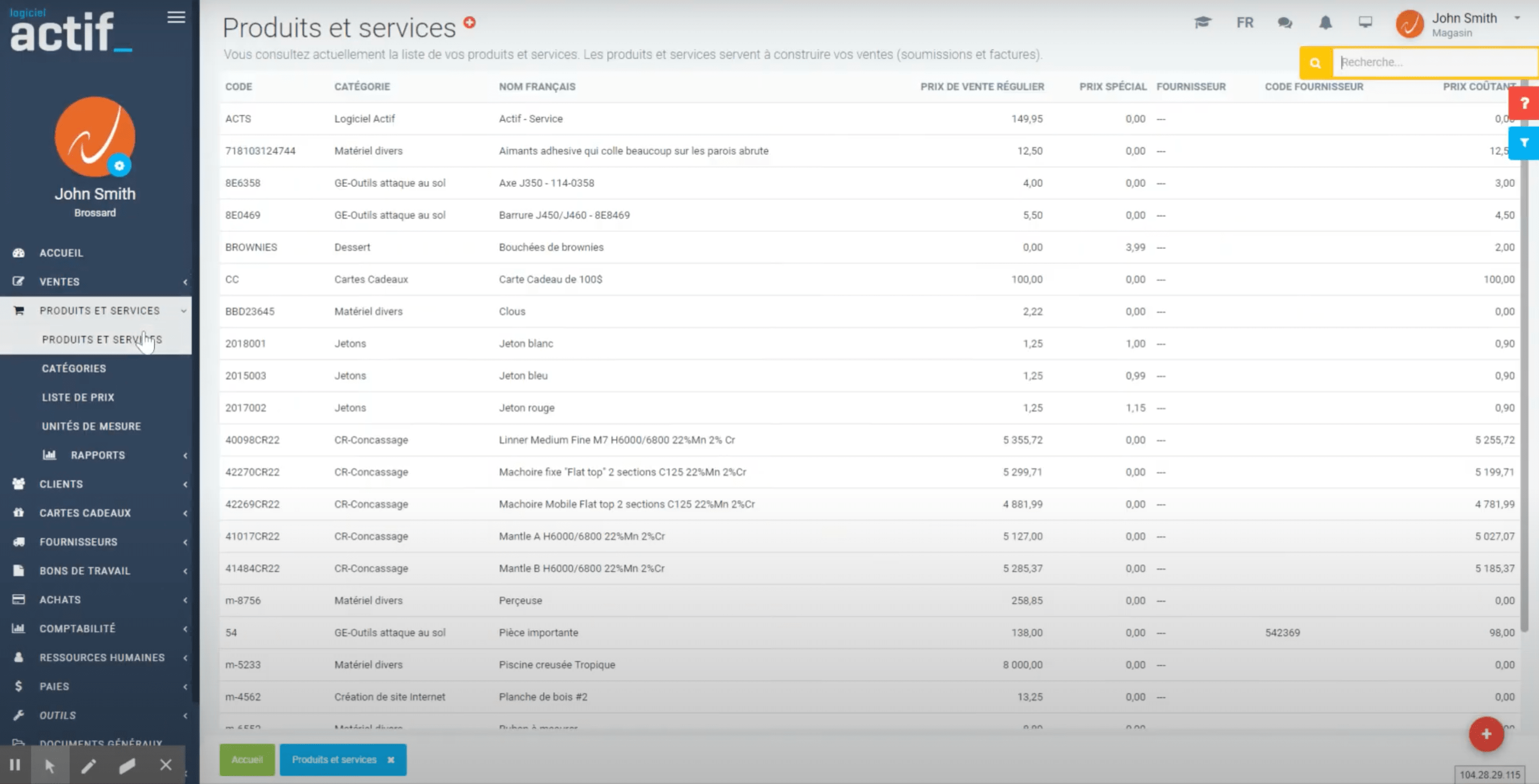 Pour créer un produit « carte-cadeau », cliquez sur Produits et services dans le menu de gauche.