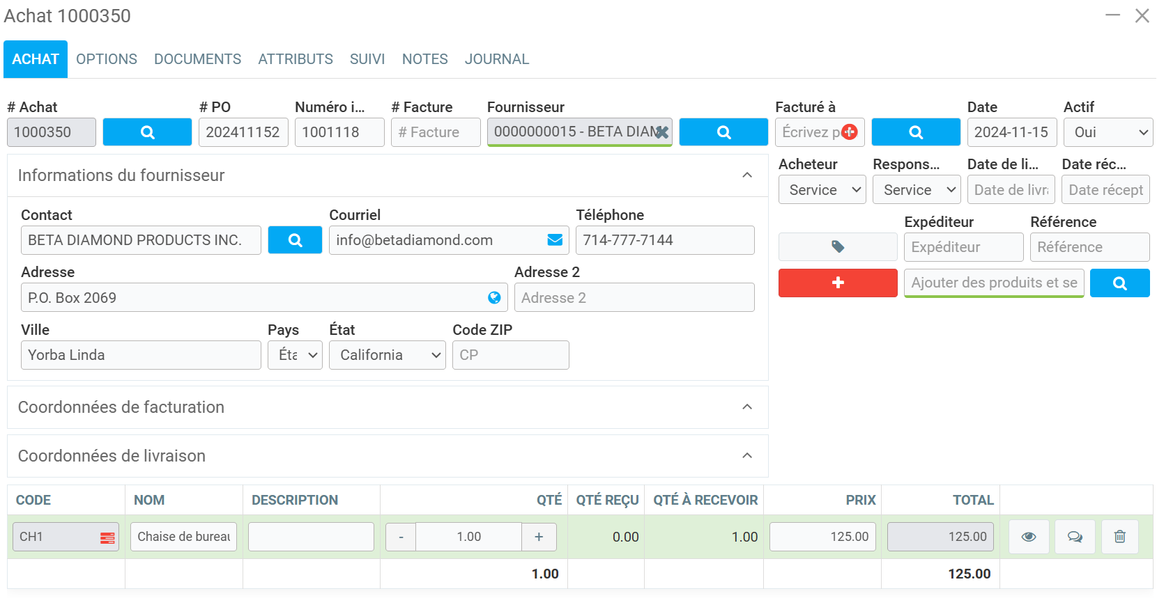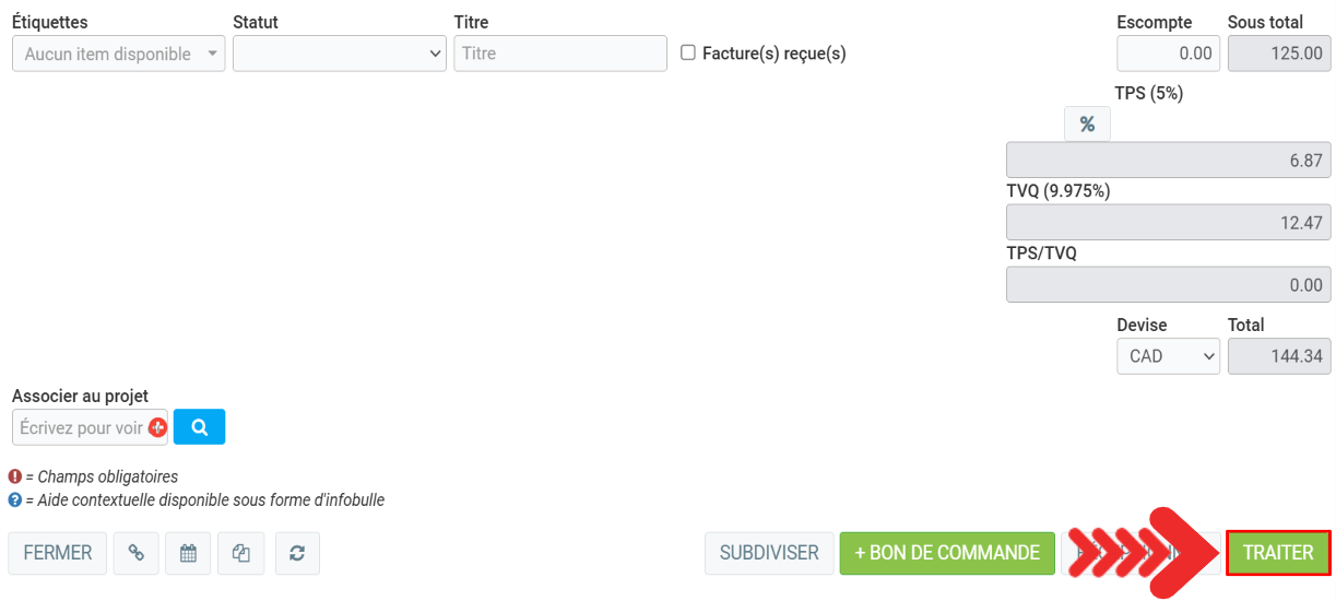 Les produits feront désormais partie de votre inventaire. Pour que les produits achetés apparaissent sur le bon de travail et dans l'estimé, ils doivent être inclus dans la vente au Point de vente. Le bon de travail, l'estimé et la facture sont accessibles à partir de l'onglet Documents.
