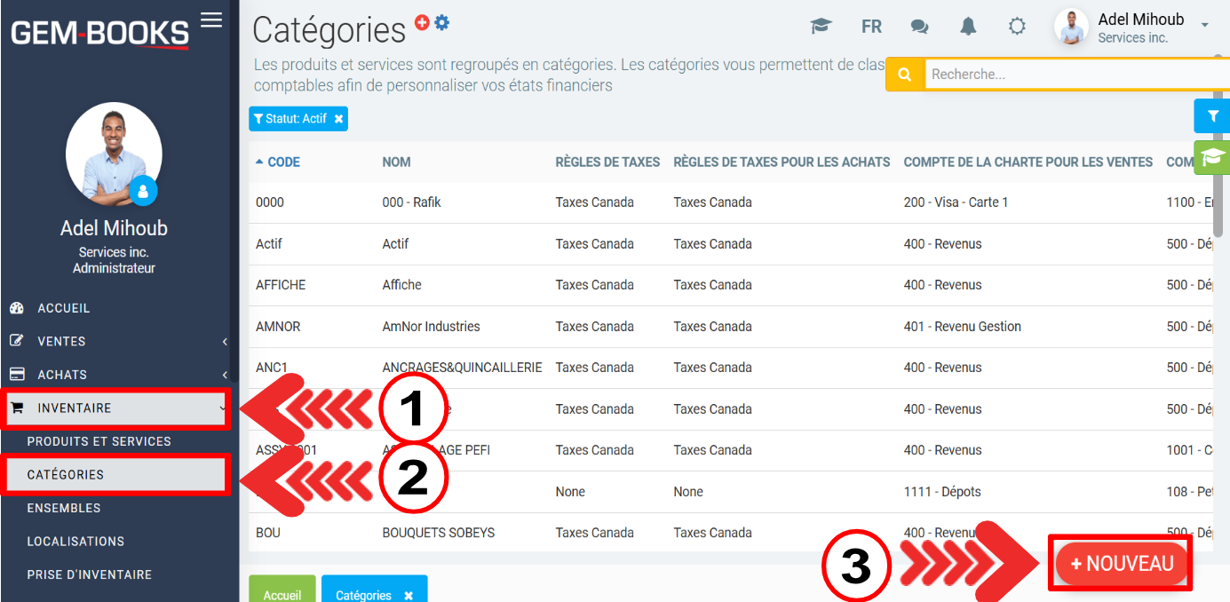Dans le menu de gauche, allez dans Inventaire > Catégories > Nouveau.