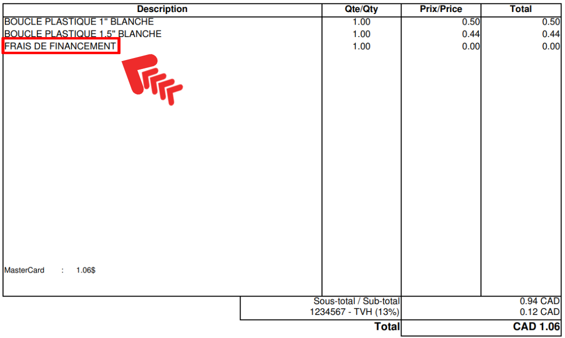 5) Il est possible de ne pas faire apparaître les frais de financement sur l'estimé et/ou la facture: