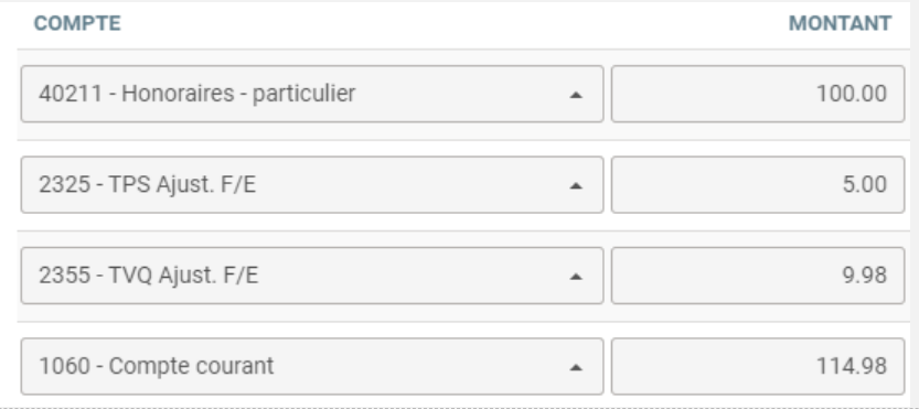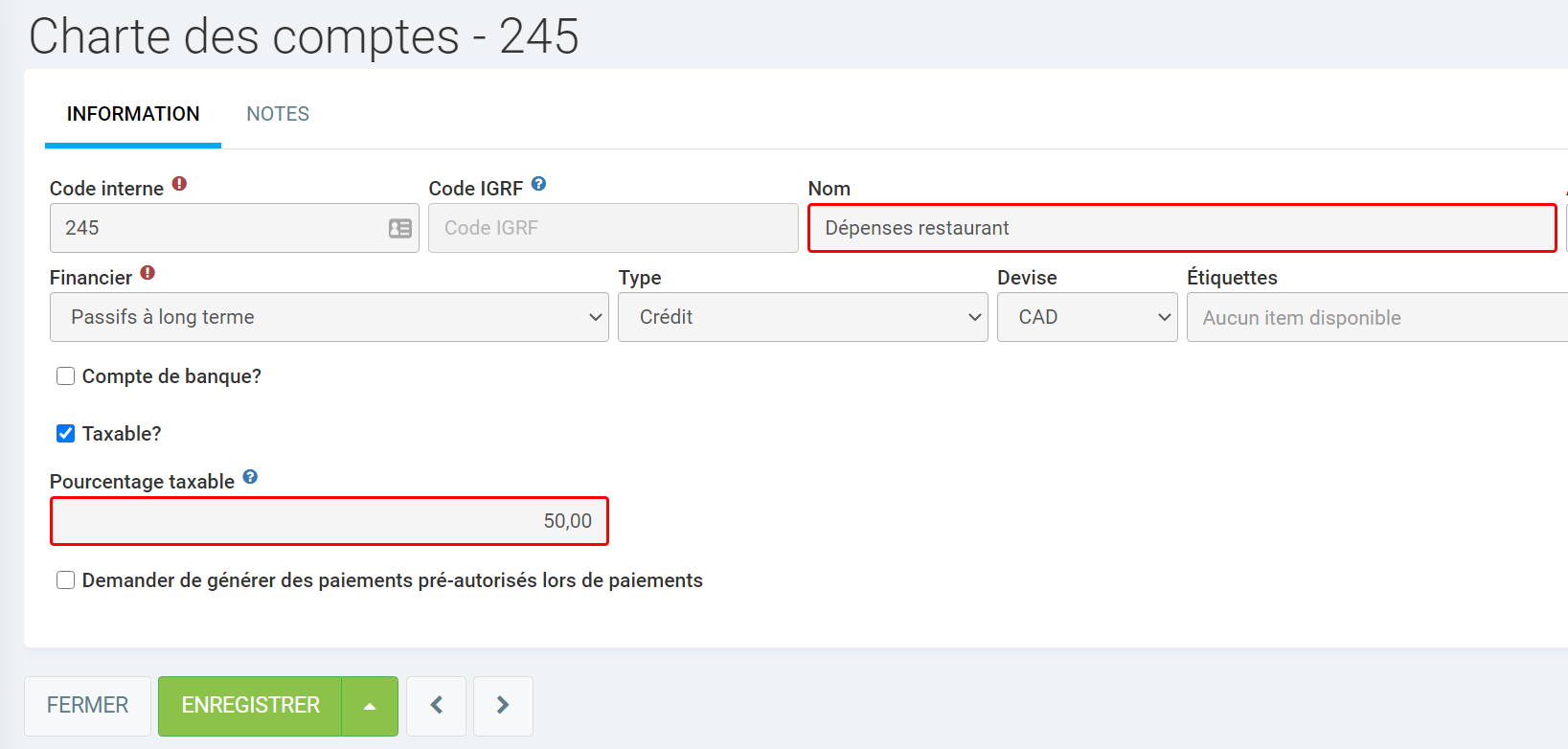 Configurer un compte avec prélèvement partiel des taxes (ex.: un compte de dépenses)