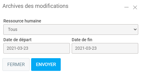 . Ce bouton se nomme Archive des modifications et celui-ci contient l'historique des modifications du module dans lequel on se trouve. Lorsque vous cliquez sur ce bouton, une fenêtre comme celle-ci apparaitra :