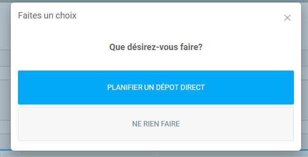 Choisissez "Planifier un dépôt direct" afin que la transaction soit placée en attente dans le module de dépôt direct.