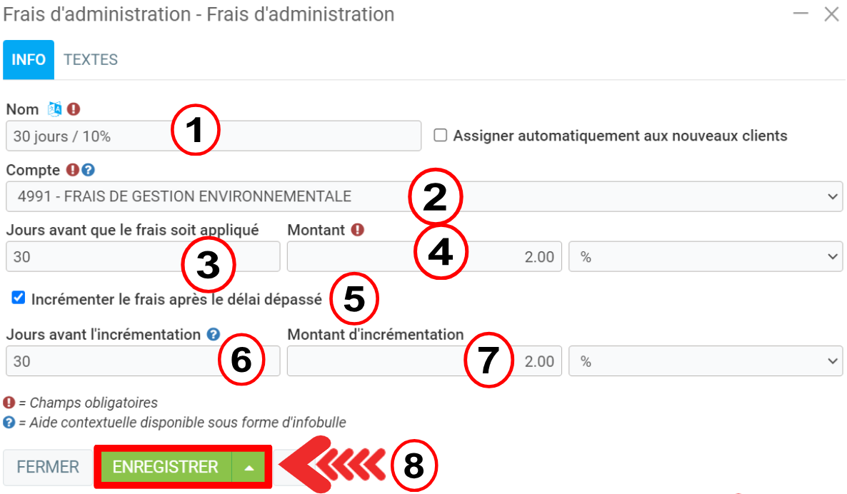 - Cochez ou non la case "Incrémenter le frais après le délai dépassé".