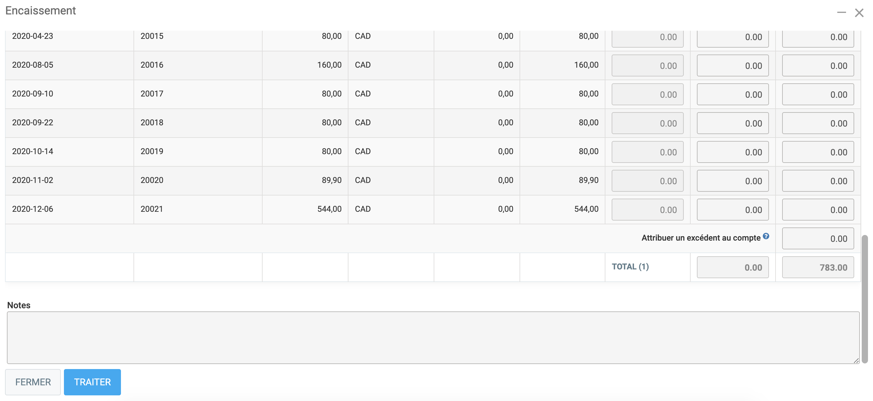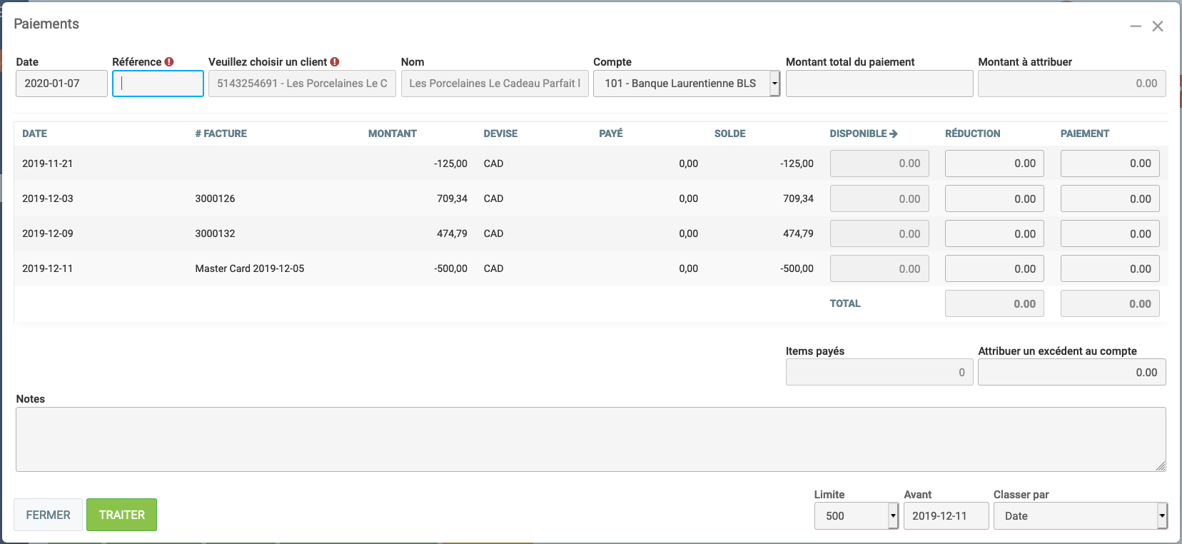 Répéter l'exercise pour toutes les factures payée et cliquez sur le bouton Traiter en bas à gauche.