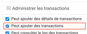 Accès et permissions : Pour permettre ou empêcher un utilisateur de faire des encaissements, utilisez ce rôle.