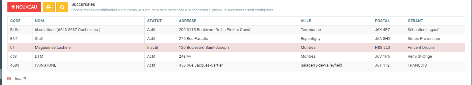 Pour ce faire, cliquez sur le menu Paramètres, Configurations. Sélectionnez votre succursale dans le bas (vous n'en avez souvent qu'une seule).