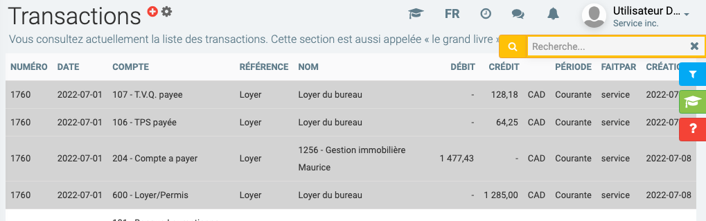 Prenons cette transaction pour le loyer de juillet que vous nous voulons automatiser pour le mois prochain et les suivants.