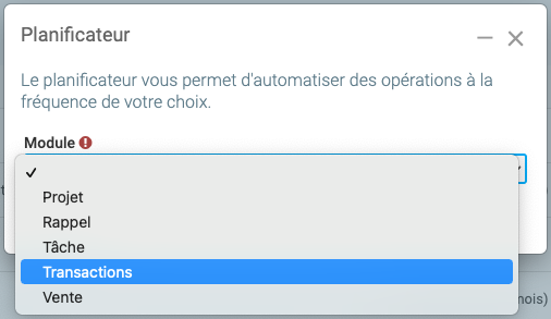 Planifier une opération récurrente pour répéter facture, paiement, tâche, commande et PPA