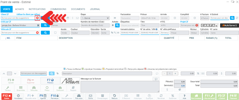 Vous pouvez également cliquer sur le bouton + dans le champ Client.