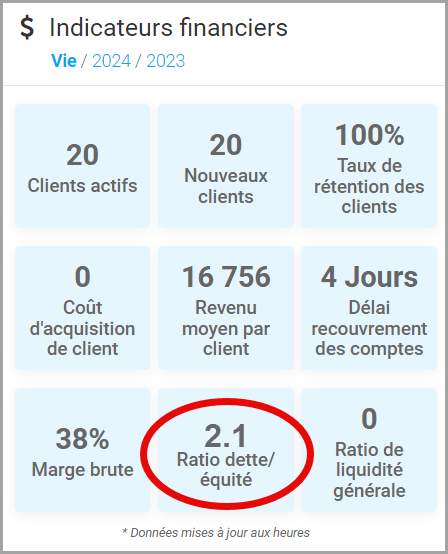 Notez qu'un ratio bas n'est pas nécessairement positif. Bien qu'il puisse caractériser une entreprise en bonne santé, qui a atteint une certaine maturité et accumulé une quantité importante de capitaux, il peut également démontrer une trop grande prudence de l'entreprise et une aversion à la prise de risque. Dans ce contexte, la croissance de l'entreprise pourrait s'en trouver mitigée.