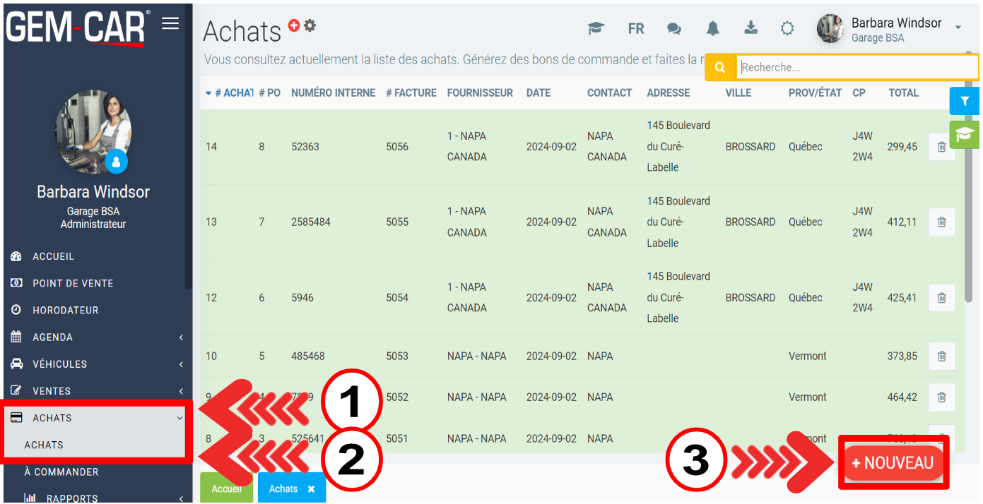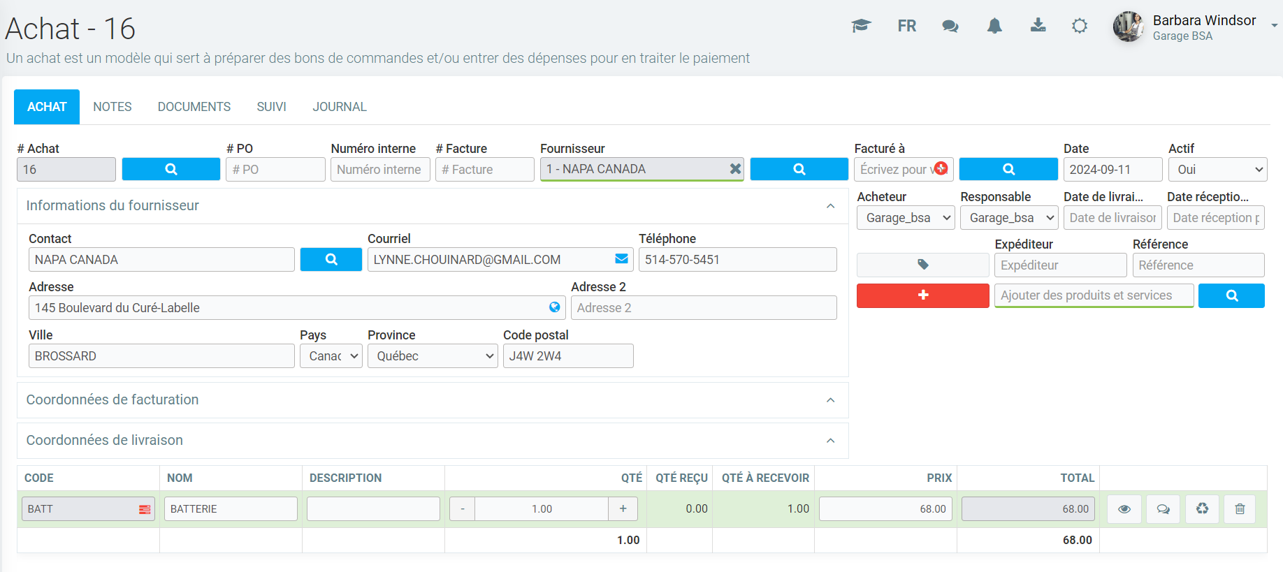 L'achat fera partie de la liste et sera accessible à partir du menu Achats > Achats.