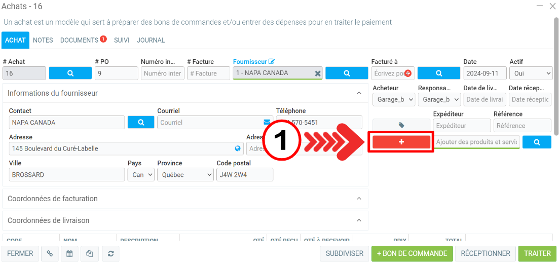 Si vous choisissez de créer un nouvel achat, après avoir cliqué sur le bouton +Nouveau, une nouvelle fenêtre d'achat s'ouvrira.