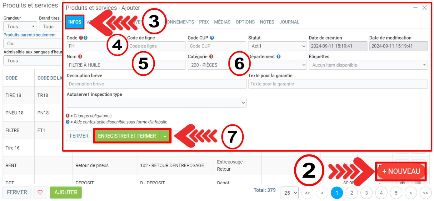 - Produit (vous pouvez effectuer une recherche dans la barre située à droite de la page ou appuyer sur la touche rouge +)