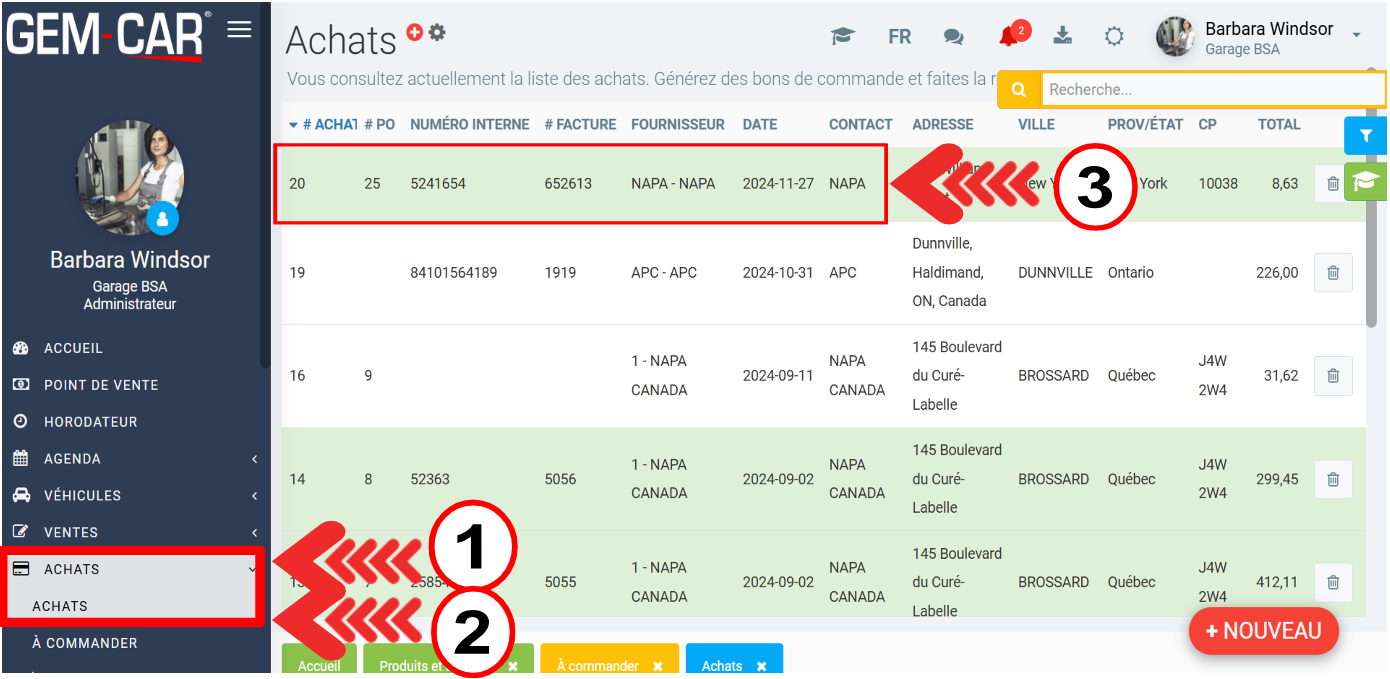 Retournez au menu Achats > À commander. Ensuite, cliquez sur Envoyer.