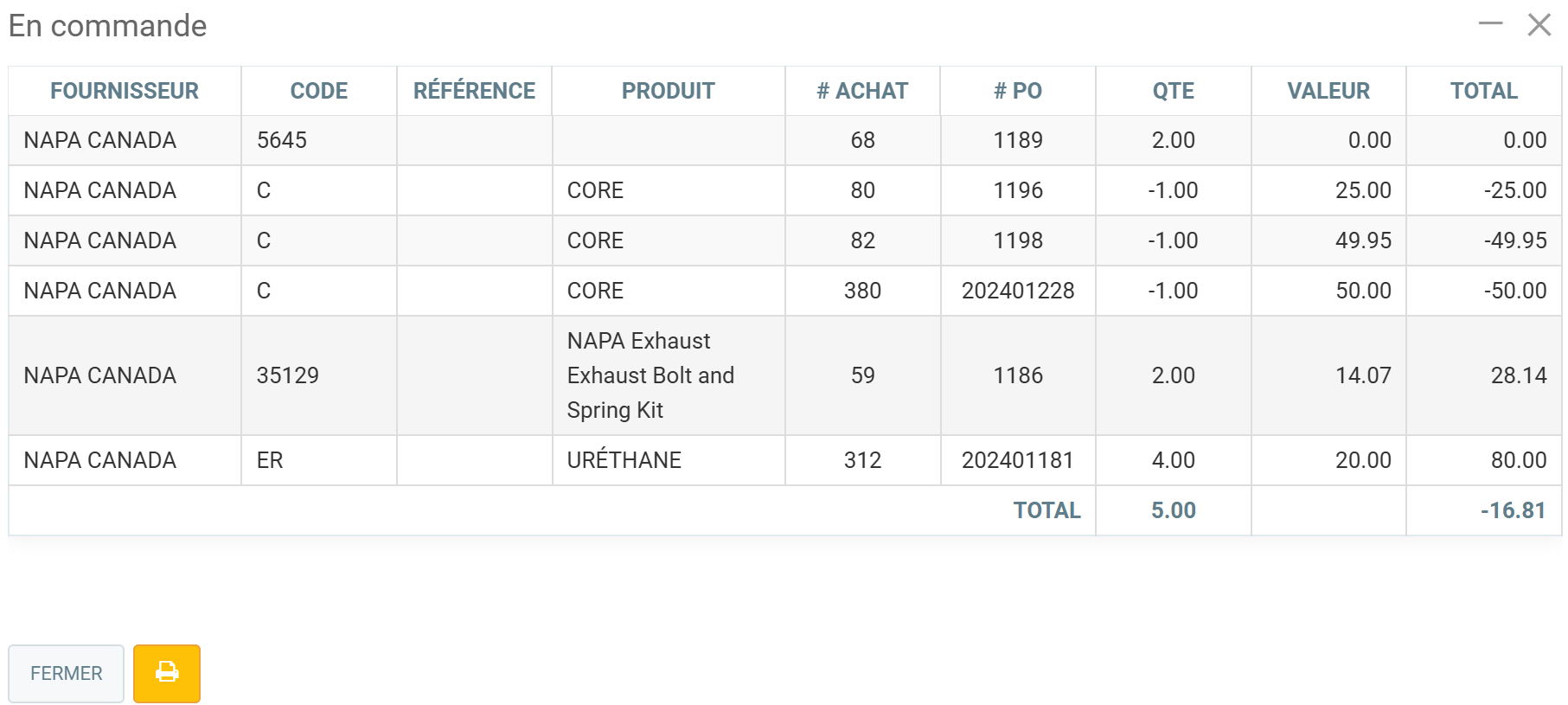 Sur la page suivante, vous verrez une liste des produits commandés auprès du fournisseur spécifique que vous avez sélectionné précédemment.