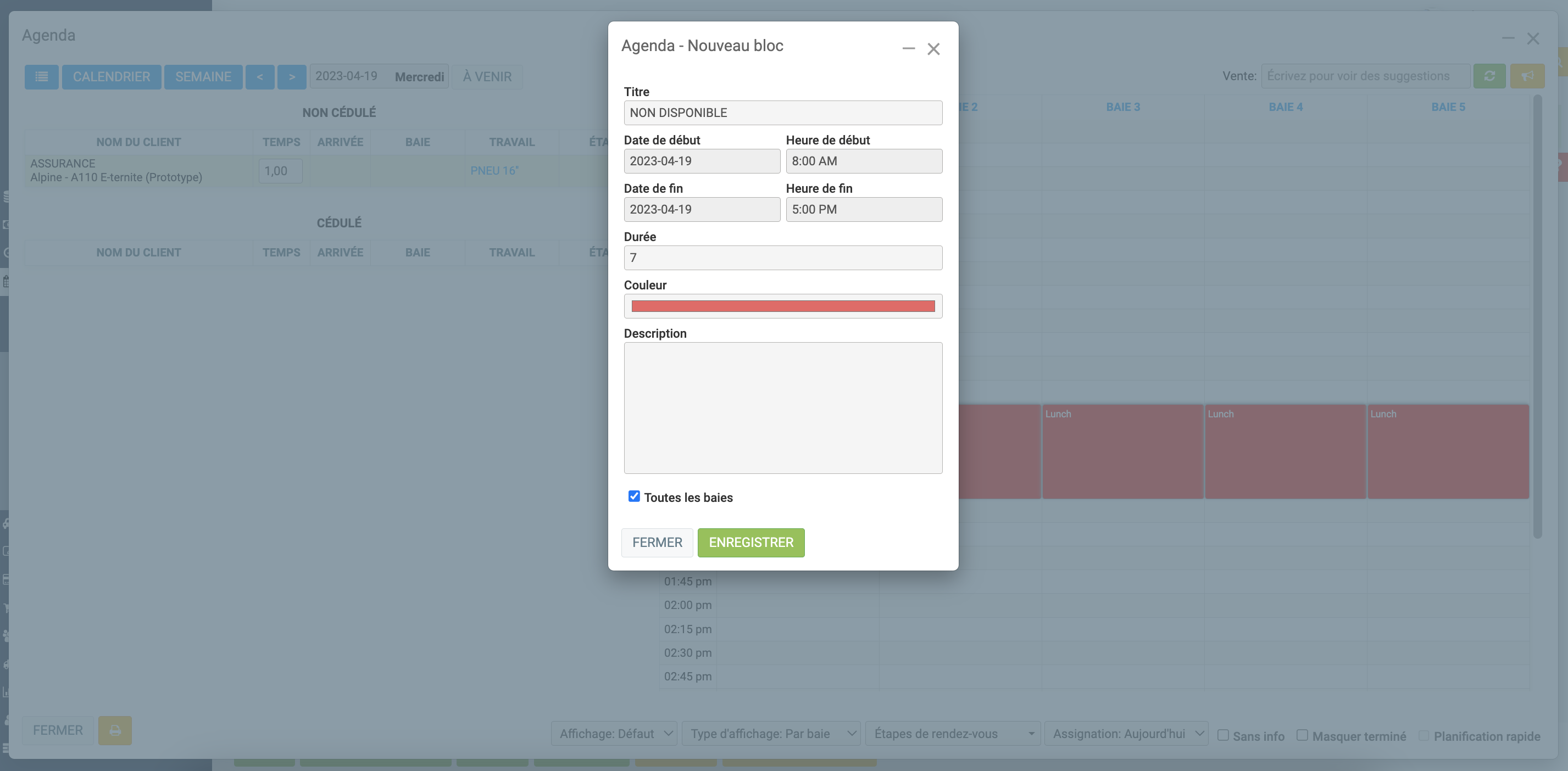- Cliquez avec le bouton de droit de la souris dans l’agenda à l’heure et sur la baie de votre choix, et SÉLECTIONNEZ "AJOUTER UN BLOC".