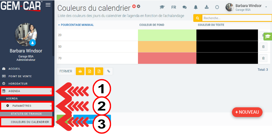 Pour ce faire, cliquez sur Agenda > Paramètre > Couleurs du calendrier.