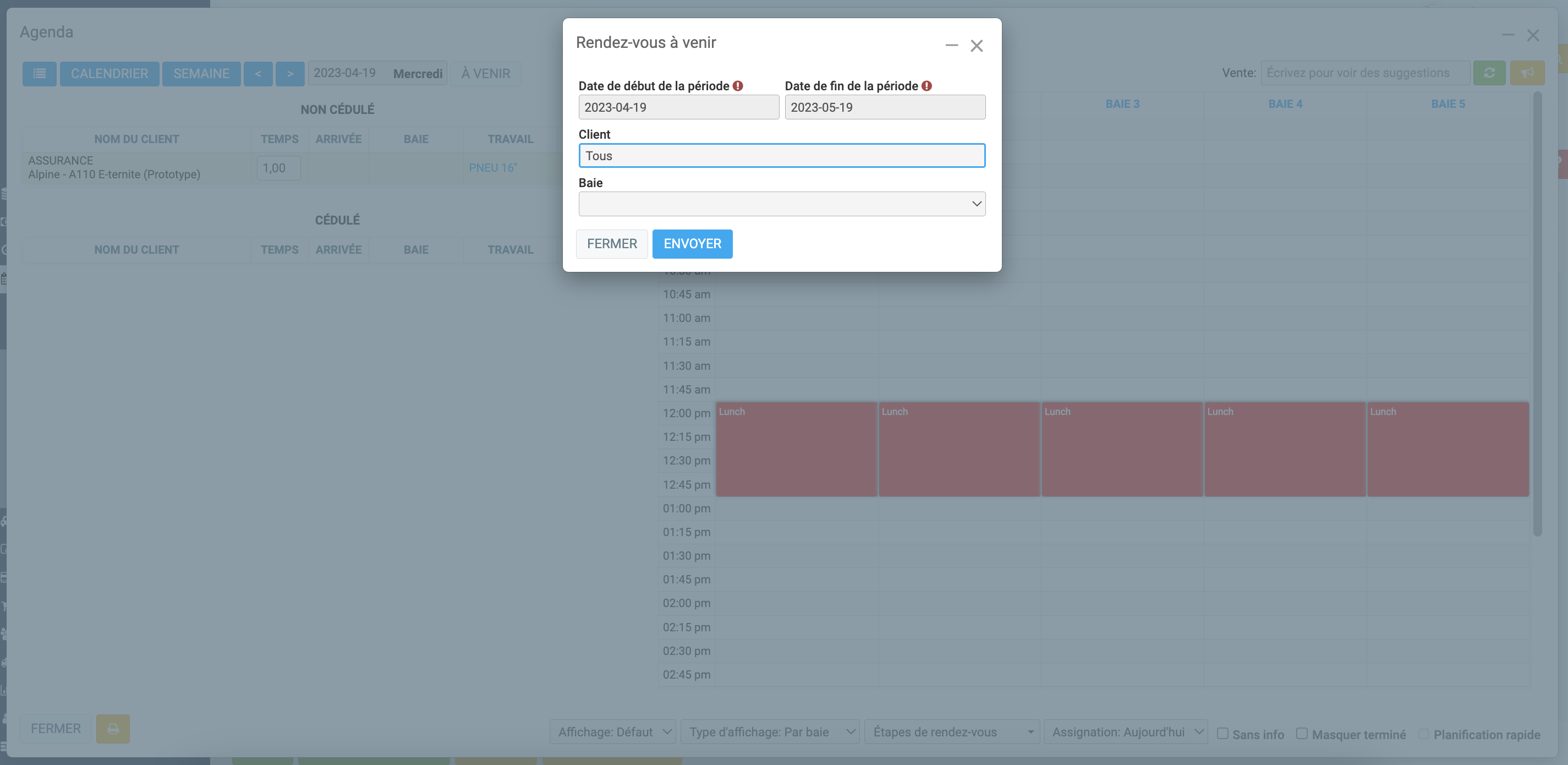 Il y a différentes options disponibles dans l’agenda de GEM-CAR.