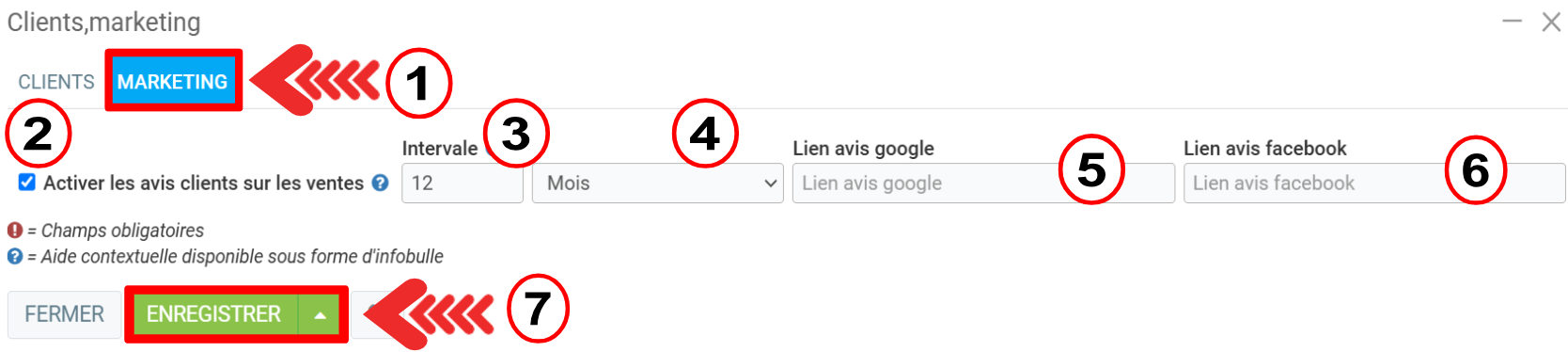 Dans votre GEM-CAR, il est possible d'activer l'automatisation et de la configurer pour recevoir les commentaires des clients sur les ventes et vous pouvez également ajouter des liens de commentaires de Google et Facebook.
