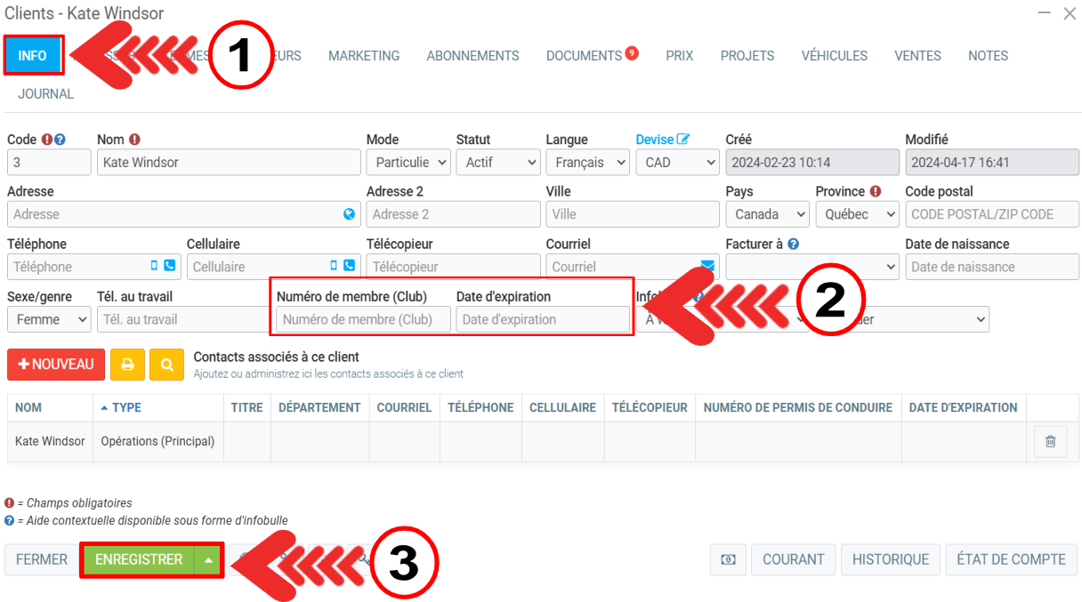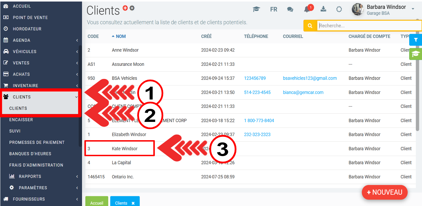 Pour saisir les données de vos clients CAA, à partir de la fenêtre Clients > Clients.