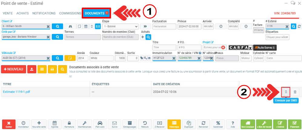 Vous verrez une série d'icônes sur le côté droit de l'écran: cliquez sur l'icône du téléphone portable pour envoyer l'estimé au client.