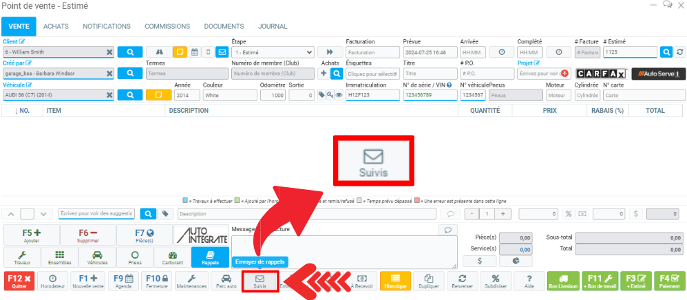 Il est possible d'envoyer les rappels à partir du Point de vente, en cliquant sur l'icône Suivis.