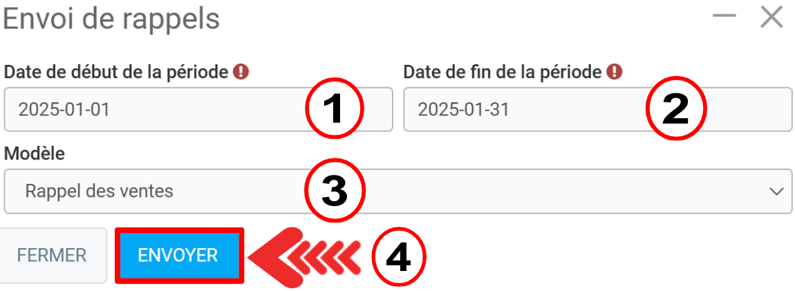 - Date de fin de période (pour laquelle les rappels ont été programmés)