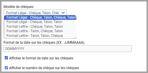 - Choisissez le format de date et si vous souhaitez qu'il s'affiche sur vos chèques.