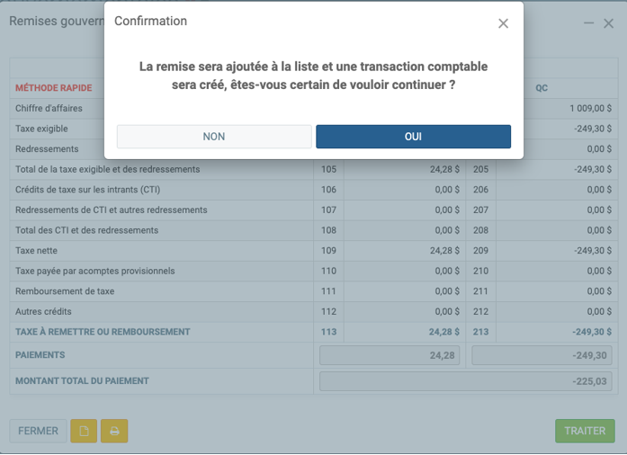 Quand vous avez terminé, il est conseillé de continuer avec le bouton "Traiter" pour passer automatiquement l'écriture comptable.