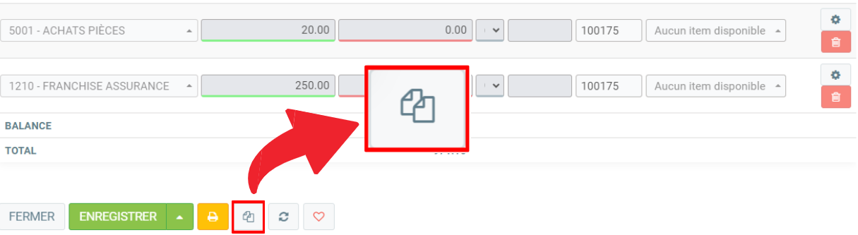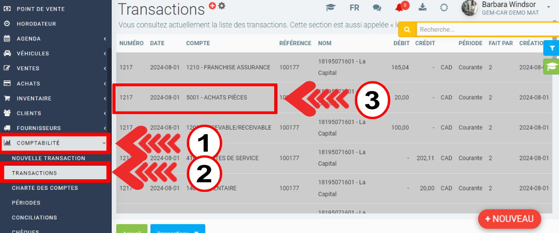 Dans le menu Comptabilité > Transactions sélectionnez la transaction au grand livre à dupliquer.