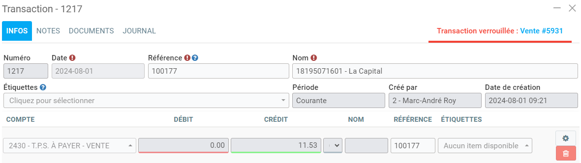 Transaction au Grand Livre - Transaction avec des taxes manuelles