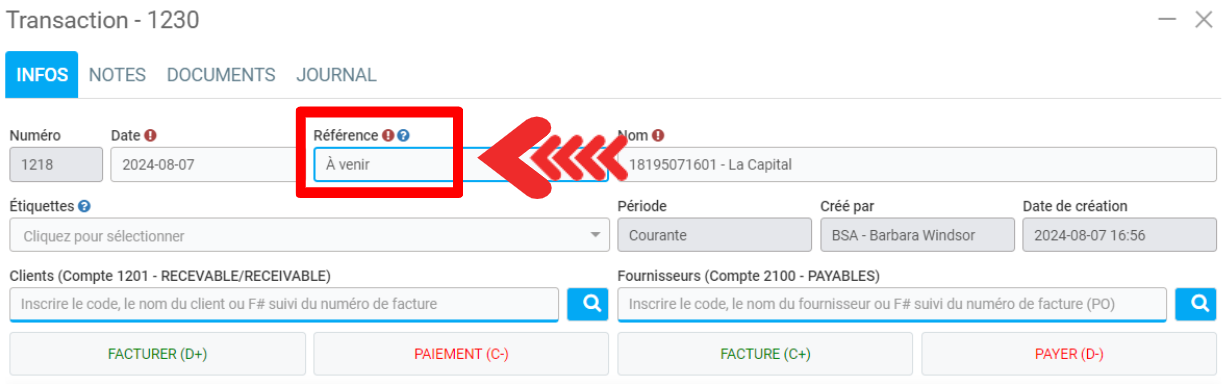 Entrez votre nouveau numéros de référence: il se copiera automatiquement dans le bas.