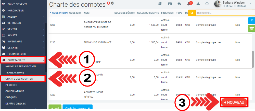 Cliquez sur Comptabilité > Charte des comptes > +Nouveau.