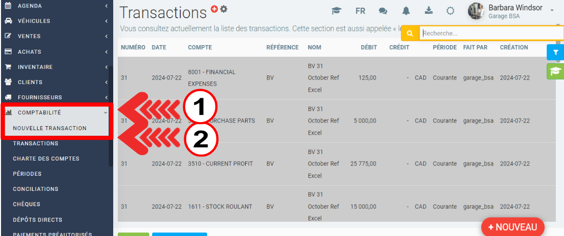 Vous pouvez simplement entrer la transaction à travers le menu Comptabilité > Nouvelle transaction.