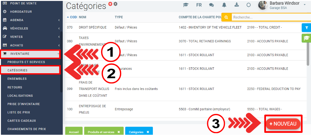 Cliquez sur Inventaire > Catégories > +Nouveau.