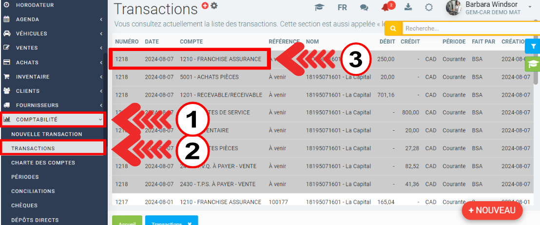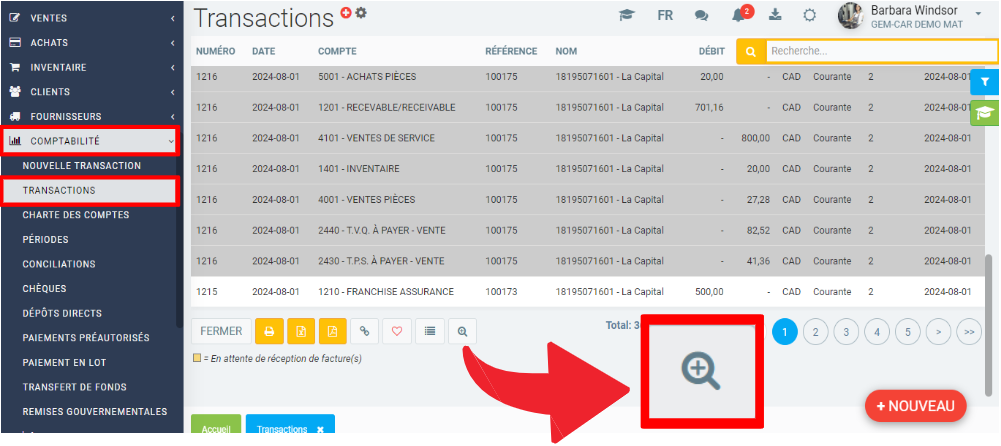 Pour ce faire, dans le menu de gauche, cliquez sur Comptabilité > Transactions, retrouvez la transaction en question.