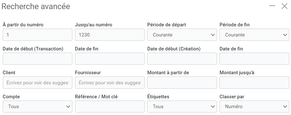Pour retrouver vos transactions favorites, allez sur le menu Comptabilité > Transaction > Recherche avancée.