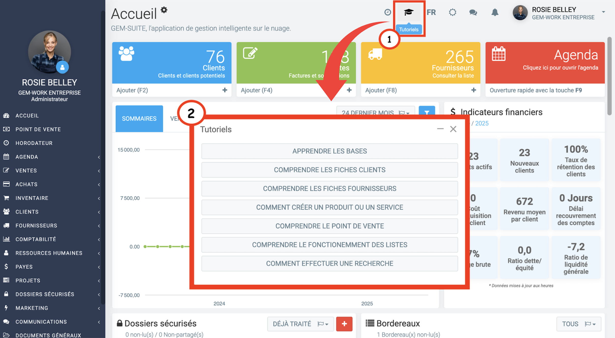 - Cliquez sur l'icône de chapeau de graduation situé à côté de la langue du système en haut à droite de la page.