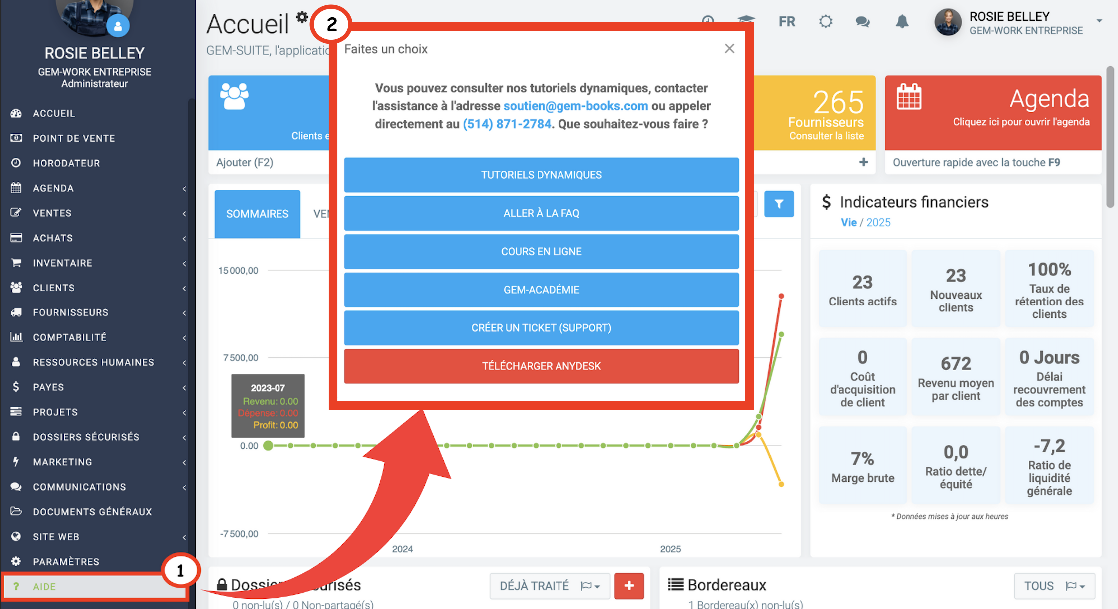 2. Vous pouvez également aller dans le menu de gauche et cliquer sur Aide.