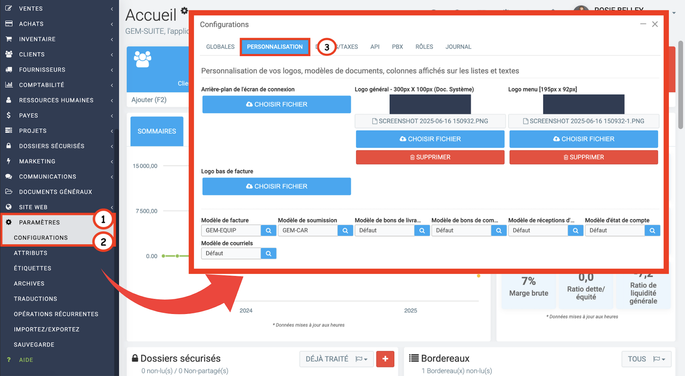 Si vous n'avez qu'une succursale, rendez-vous dans le menu Paramètres > Configuration > dans l'onglet Personnalisation.