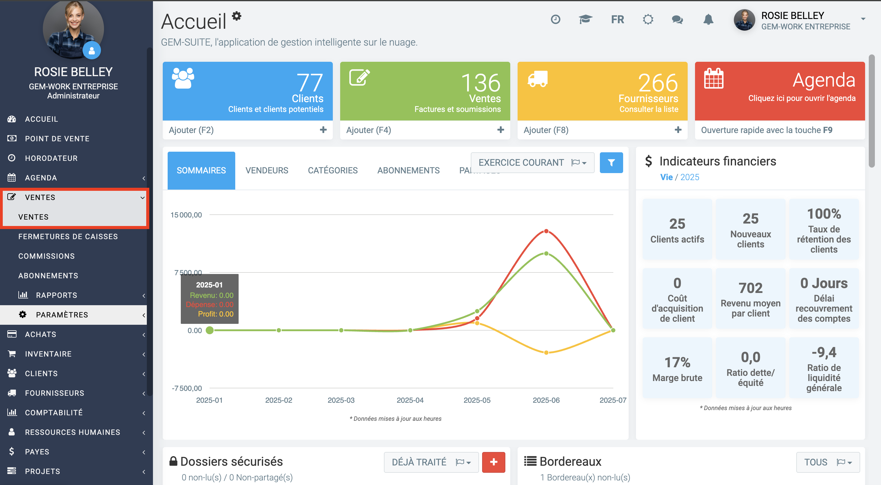 Pour supprimer un estimé, à partir du menu principal situé à gauche de l'application, cliquez sur Ventes > Ventes